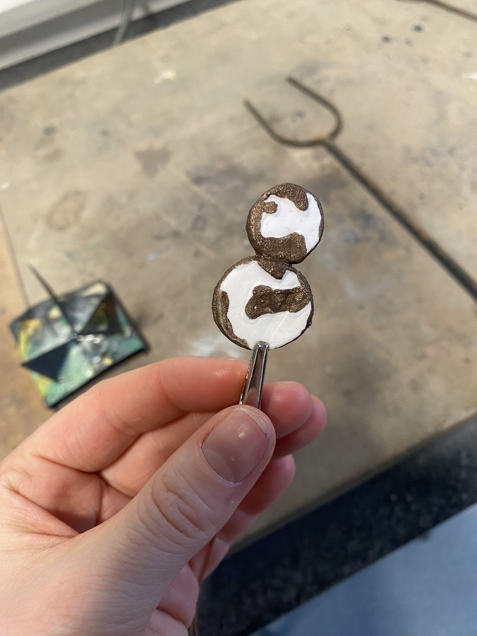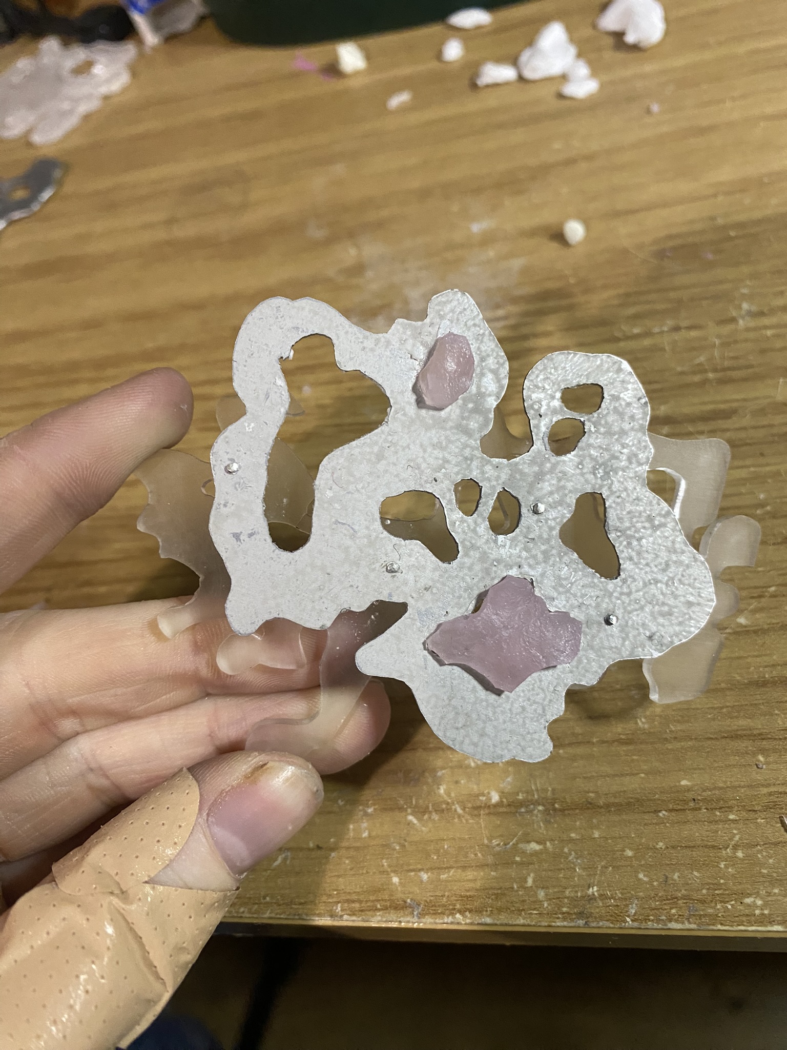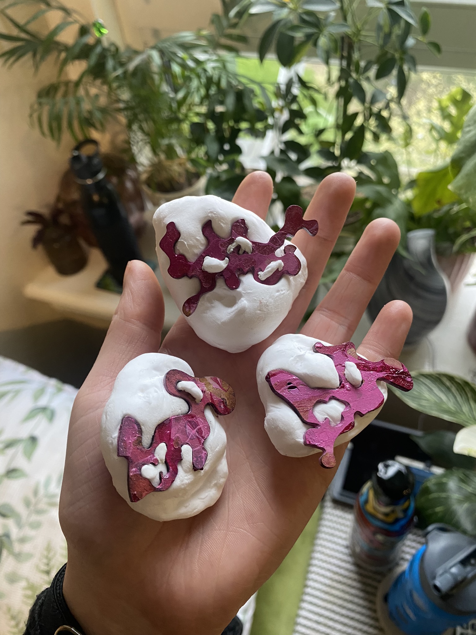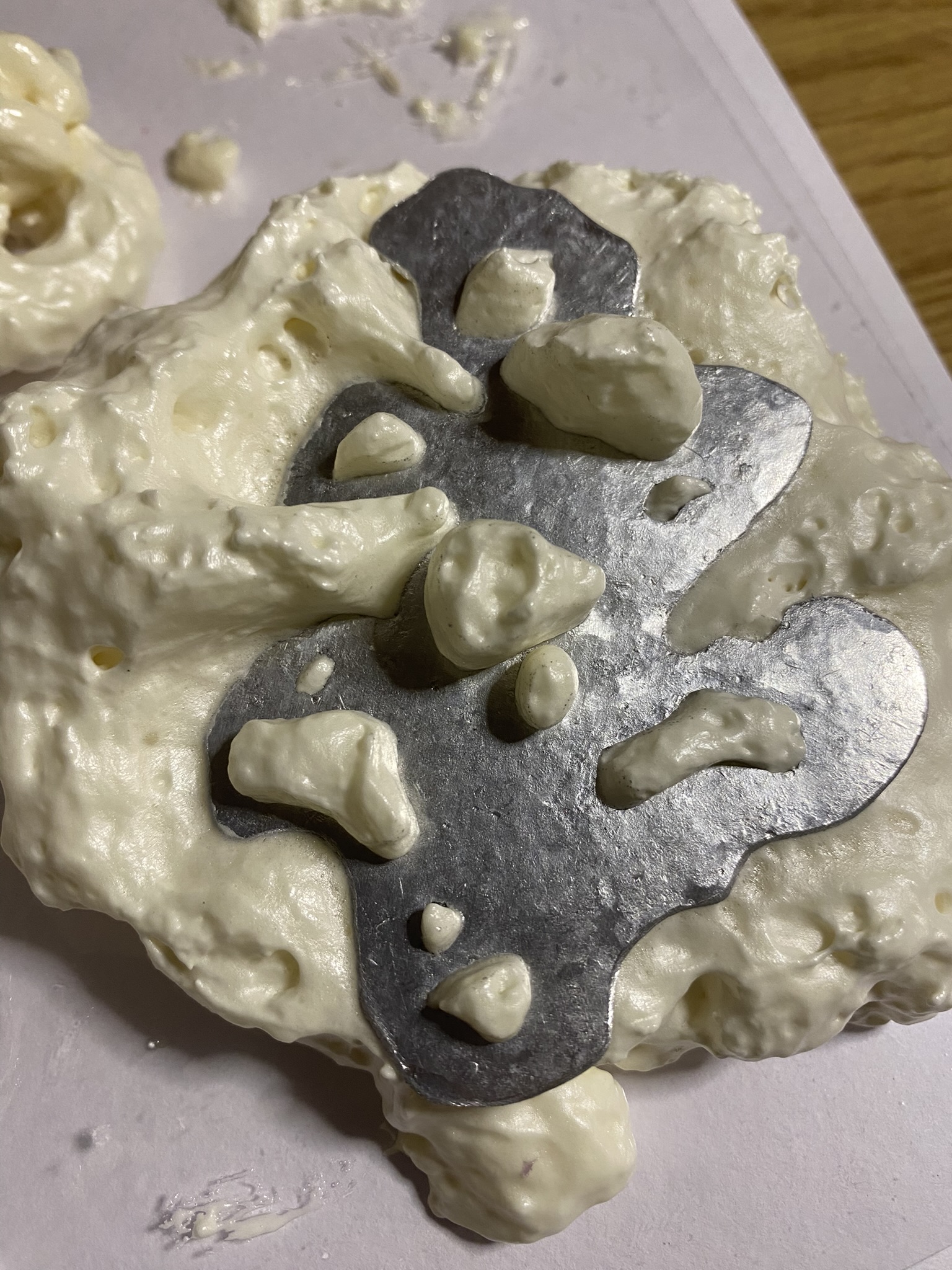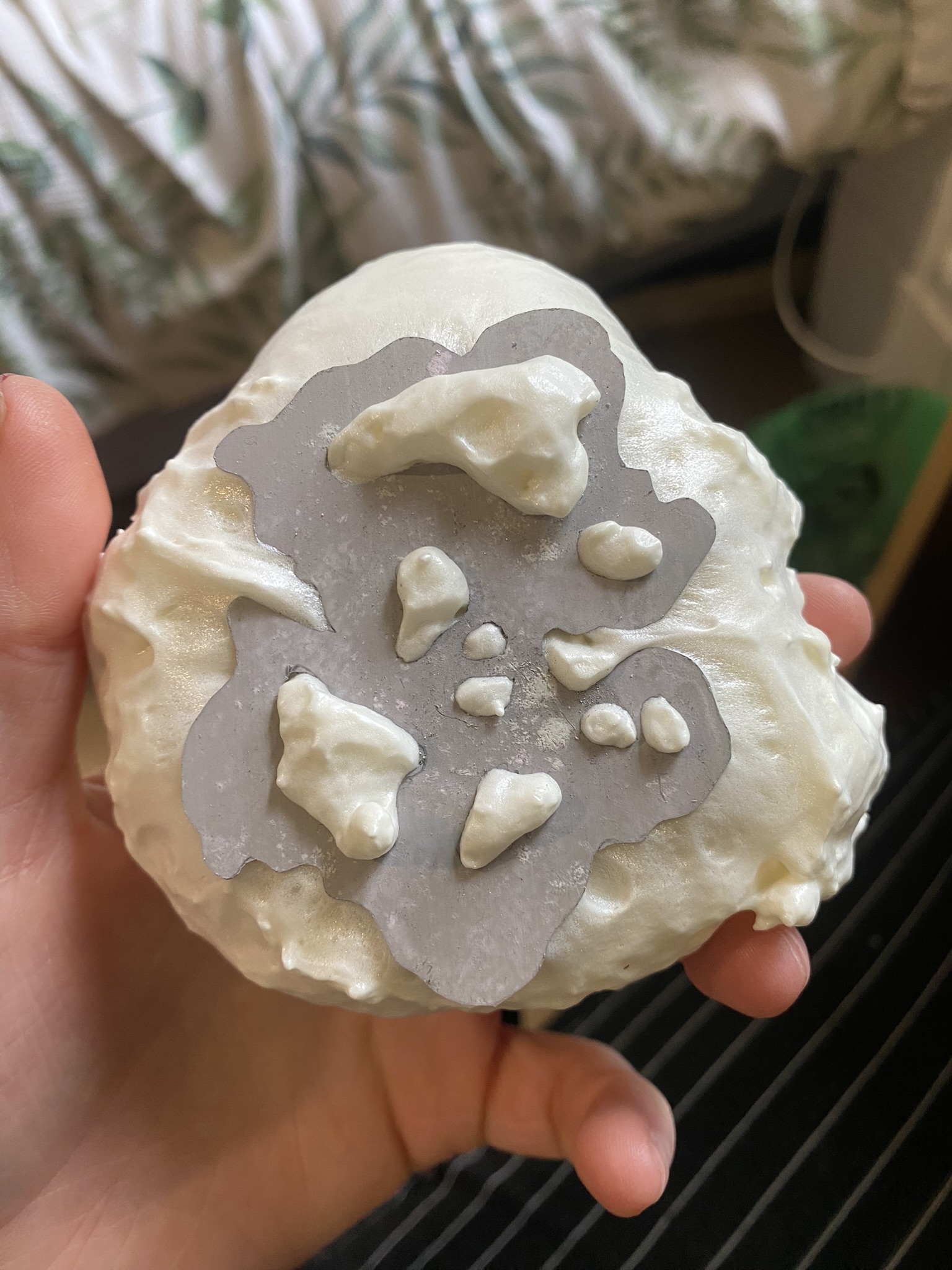 So, over the past couple years I have tried out many different materials, including metals, textiles, resin, ceramics, leaves, inks, paper, wood, plastics, 3D printing filament, bio materials, uv paints, foams and certain clays. But, I have found myself falling in love with photochromic pigments, which are a material that change colour when exposed to sunlight. Through experimentation, I have found that this material mixes really well with certain clays and resins and it can be applied to the surface of aluminium and some other metals. I came across photochromic pigments when I was researching into vitiligo, as this condition can be both triggered and treated by exposure to ultraviolet light, so to visually demonstrate this key feature to the condition I have used photochromics.
