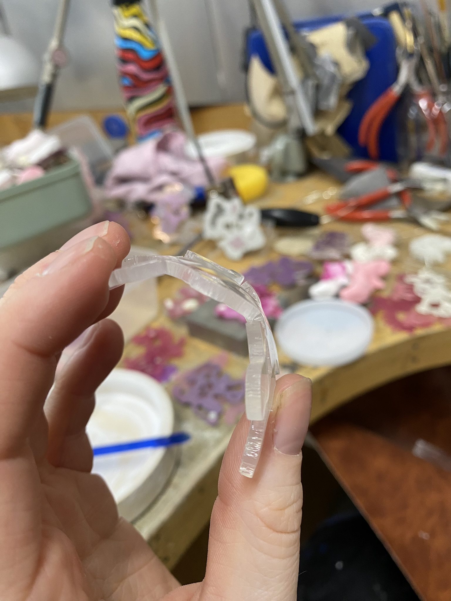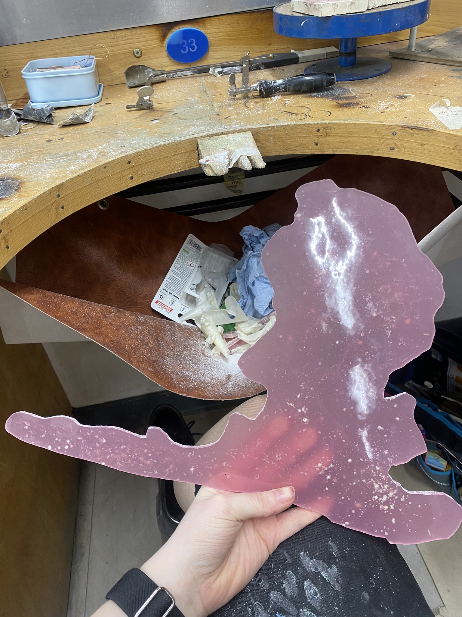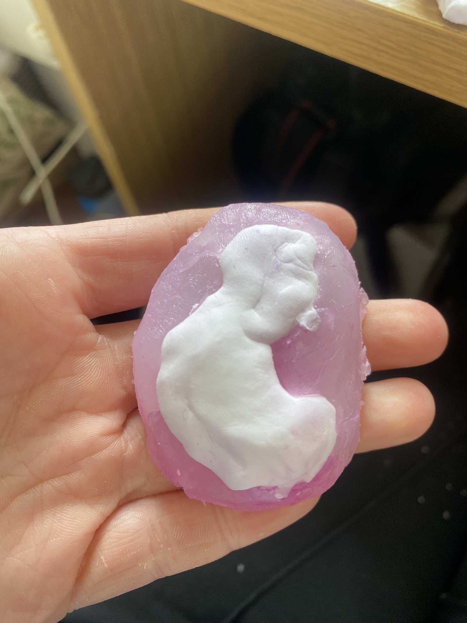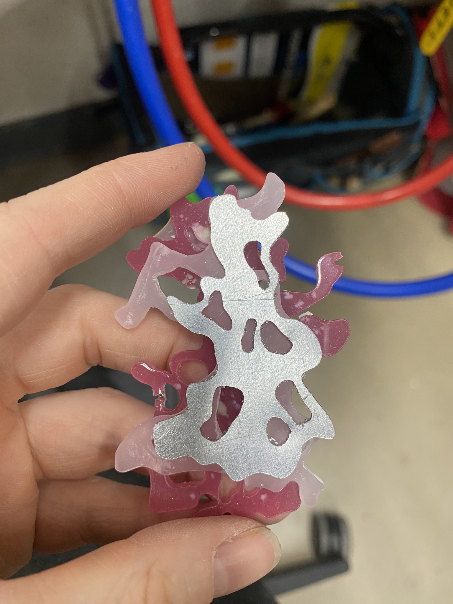 So, over the past couple years I have tried out many different materials, including metals, textiles, resin, ceramics, leaves, inks, paper, wood, plastics, 3D printing filament, bio materials, uv paints, foams and certain clays. But, I have found myself falling in love with photochromic pigments, which are a material that change colour when exposed to sunlight. Through experimentation, I have found that this material mixes really well with certain clays and resins and it can be applied to the surface of aluminium and some other metals. I came across photochromic pigments when I was researching into vitiligo, as this condition can be both triggered and treated by exposure to ultraviolet light, so to visually demonstrate this key feature to the condition I have used photochromics.