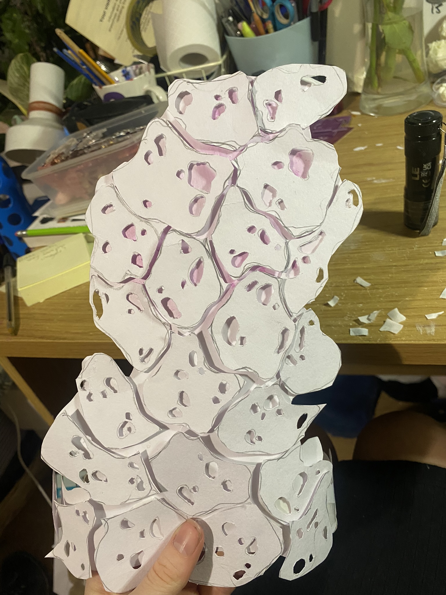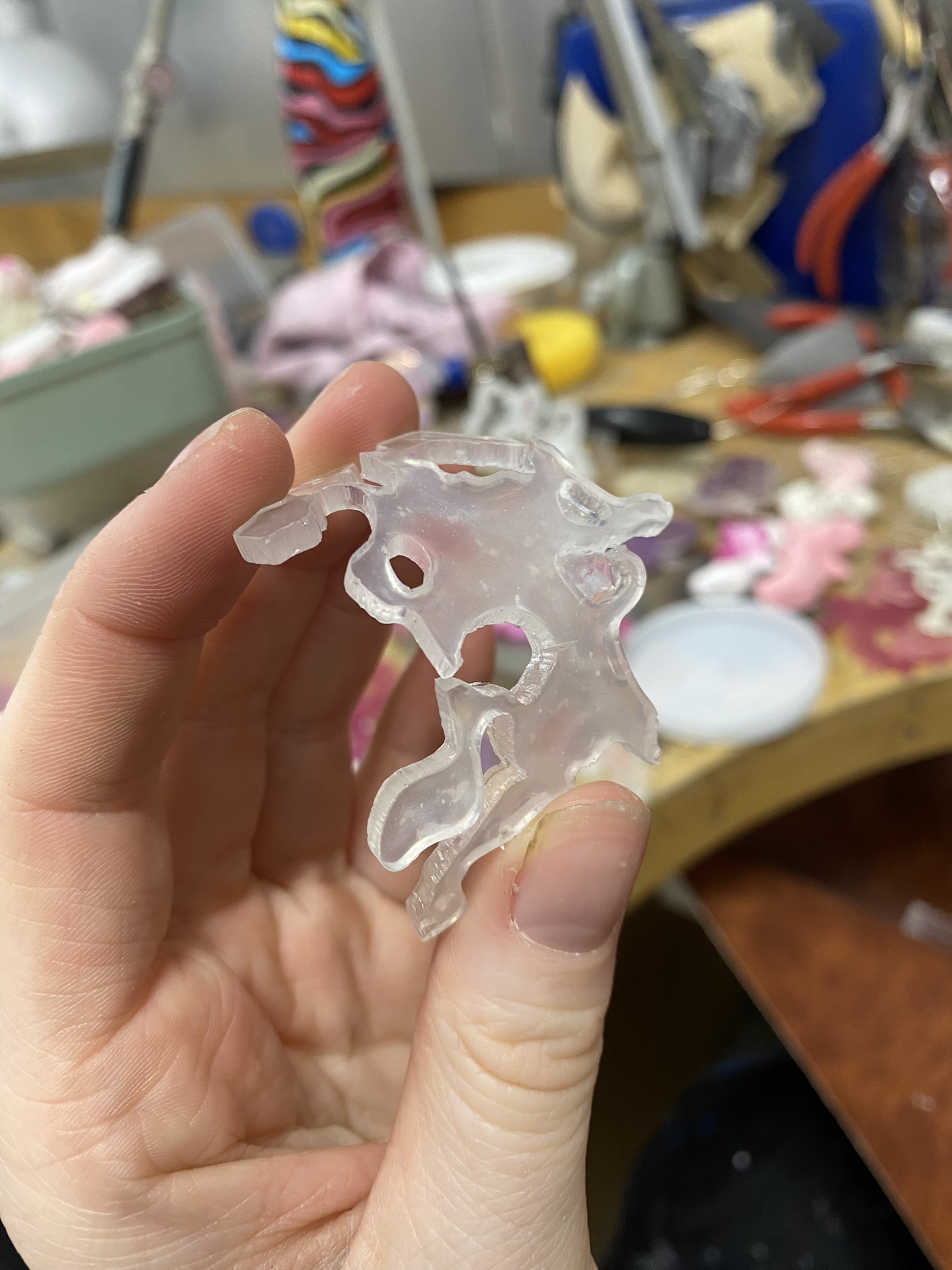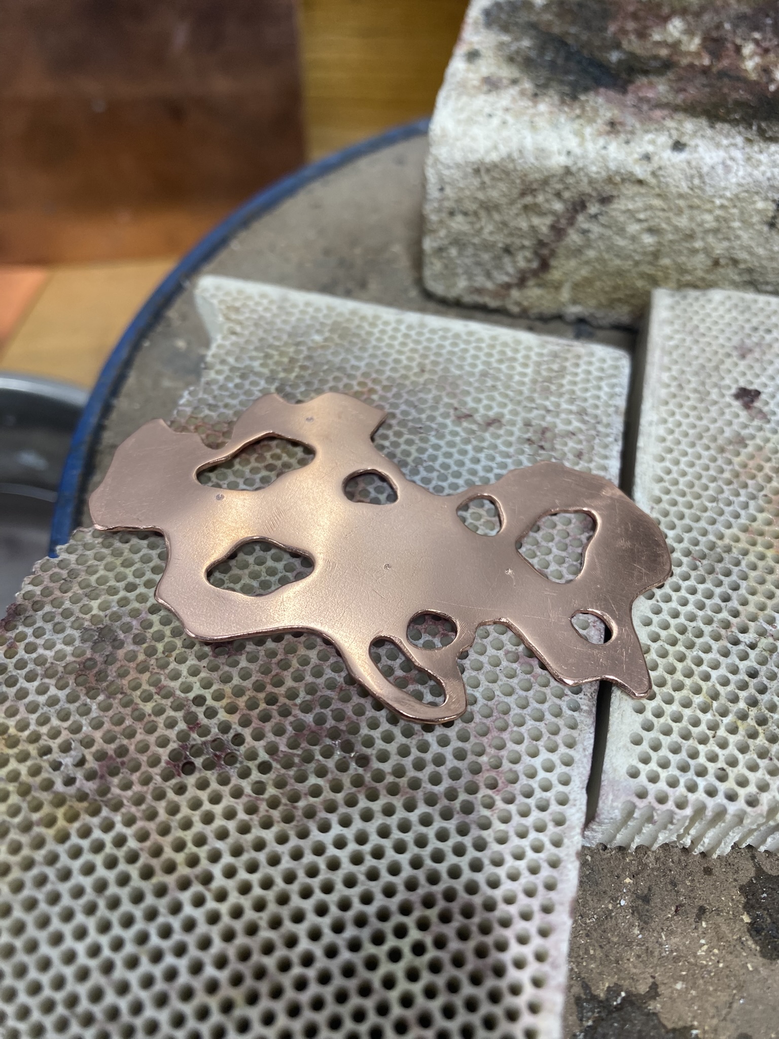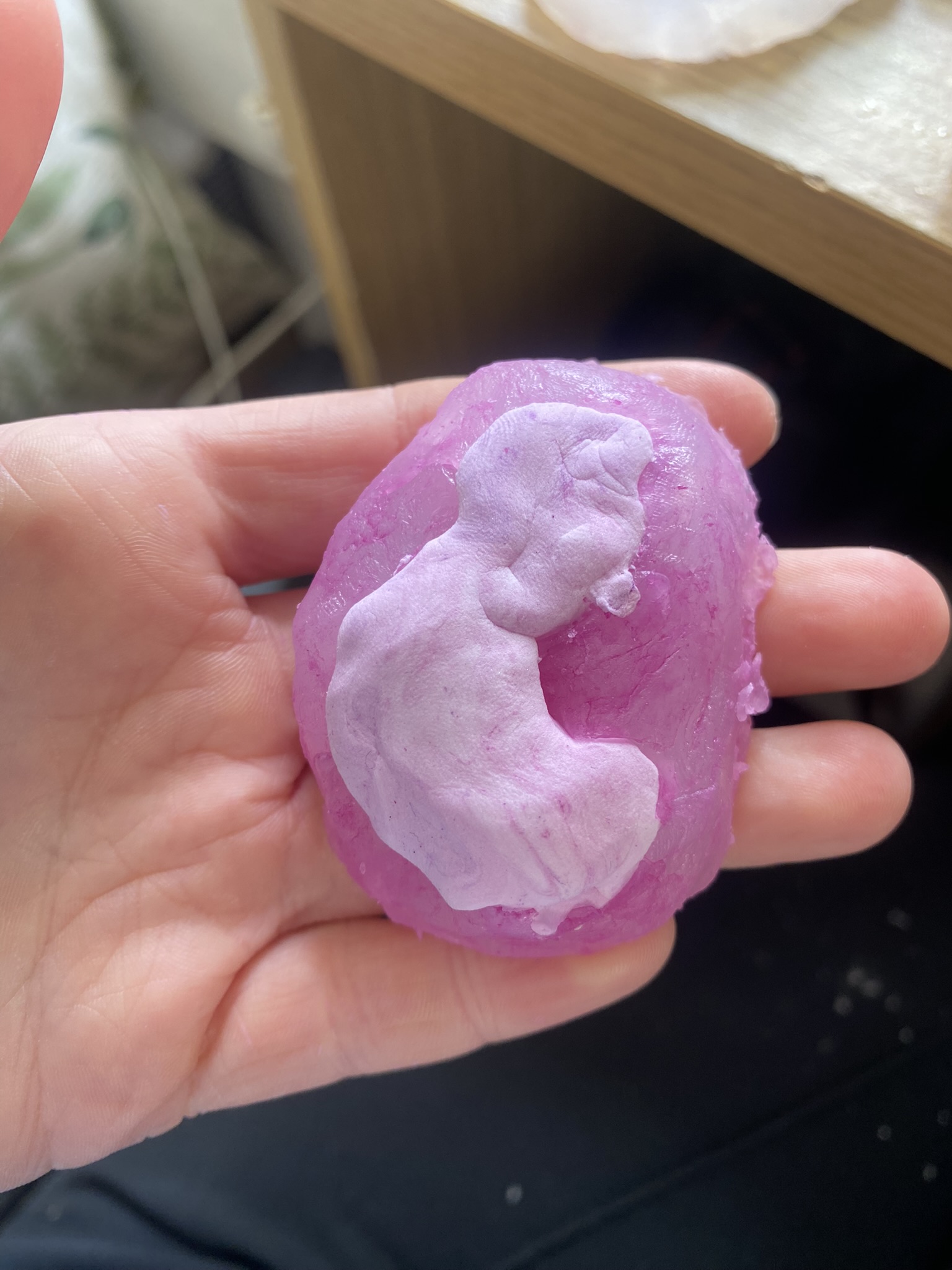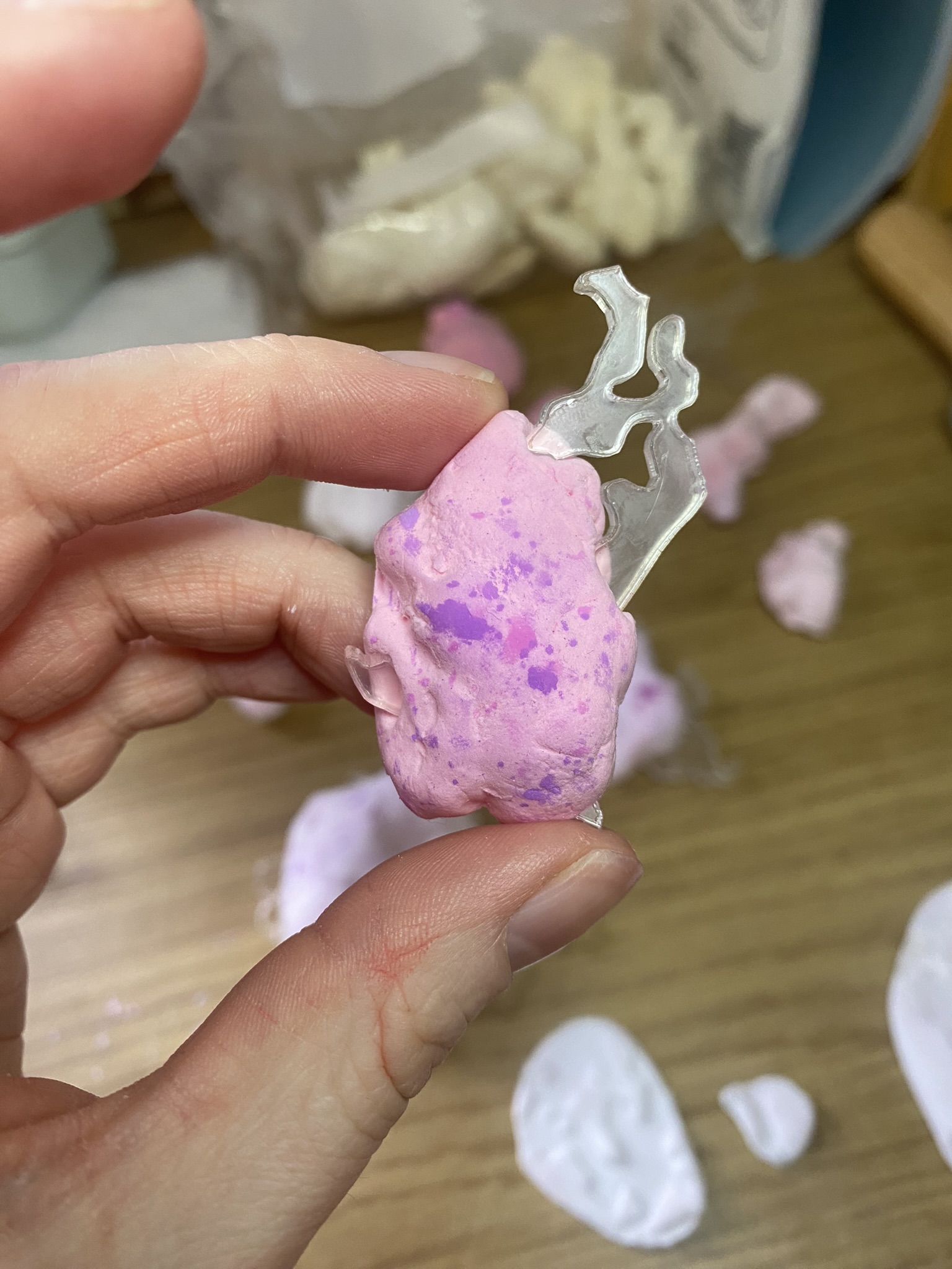 So, over the past couple years I have tried out many different materials, including metals, textiles, resin, ceramics, leaves, inks, paper, wood, plastics, 3D printing filament, bio materials, uv paints, foams and certain clays. But, I have found myself falling in love with photochromic pigments, which are a material that change colour when exposed to sunlight. Through experimentation, I have found that this material mixes really well with certain clays and resins and it can be applied to the surface of aluminium and some other metals. I came across photochromic pigments when I was researching into vitiligo, as this condition can be both triggered and treated by exposure to ultraviolet light, so to visually demonstrate this key feature to the condition I have used photochromics.