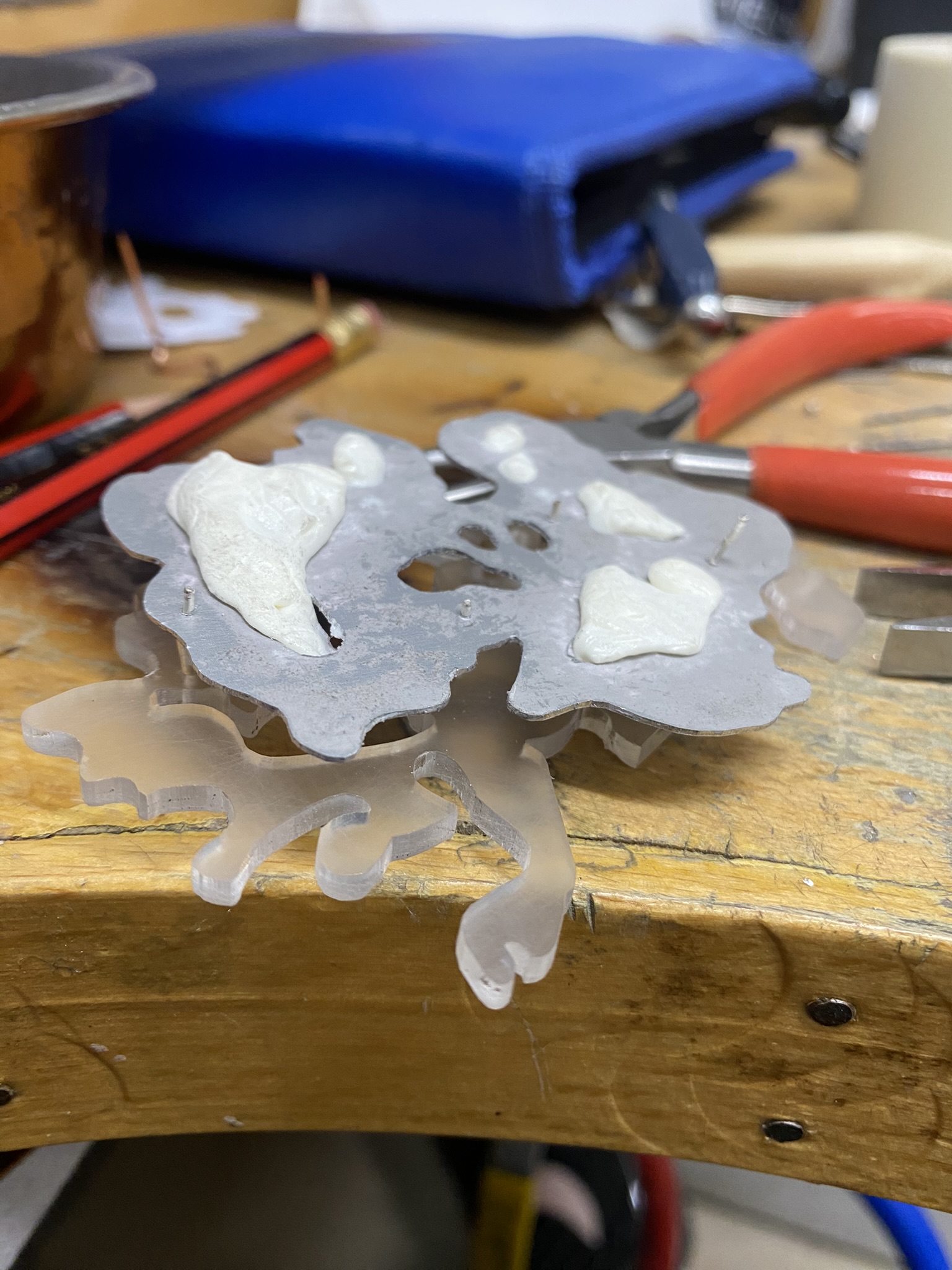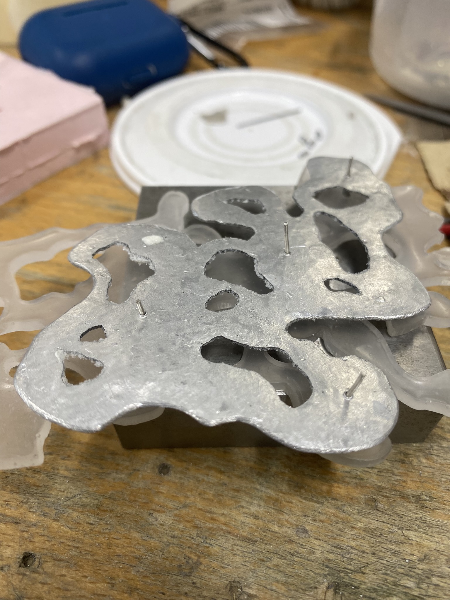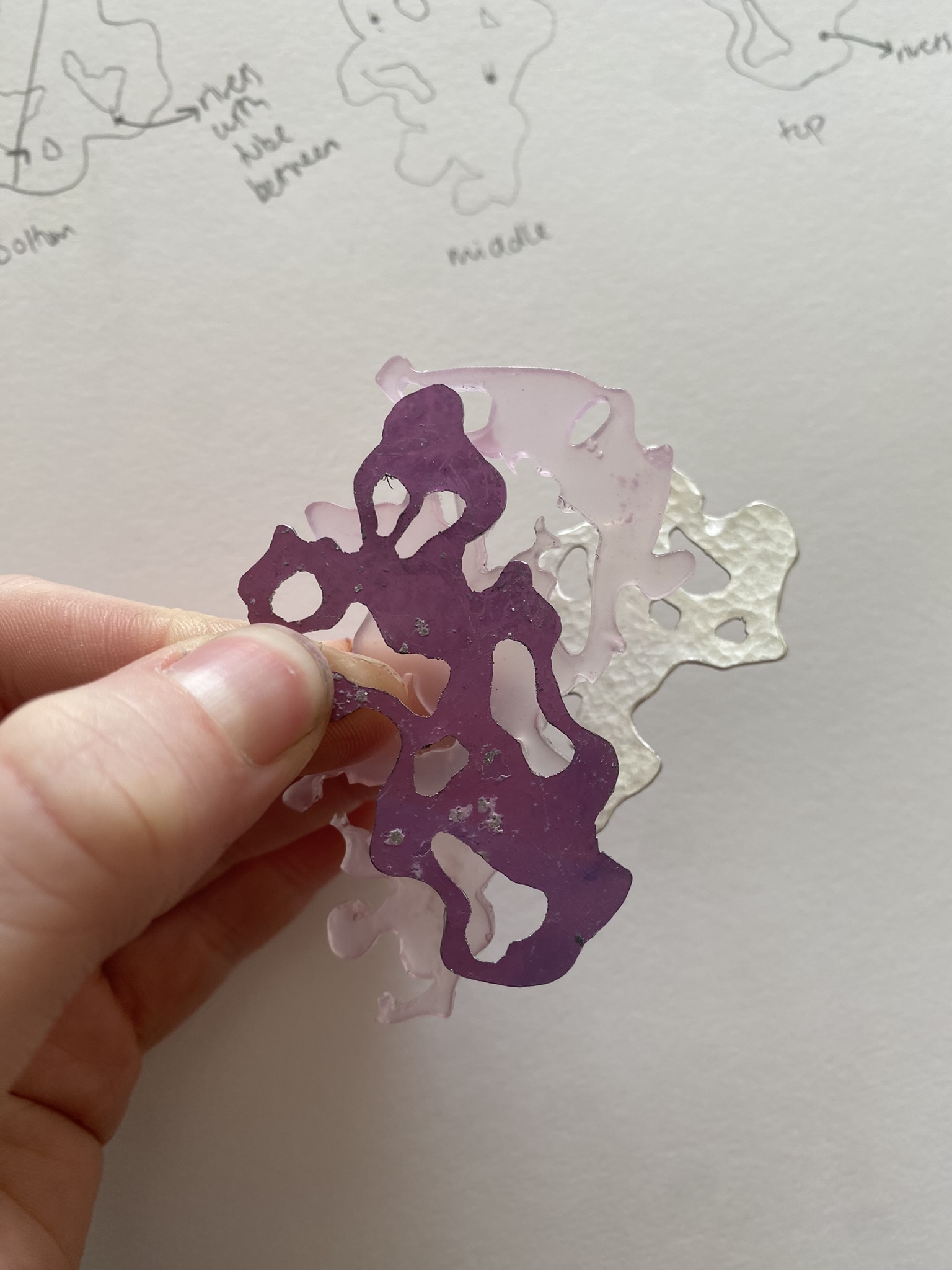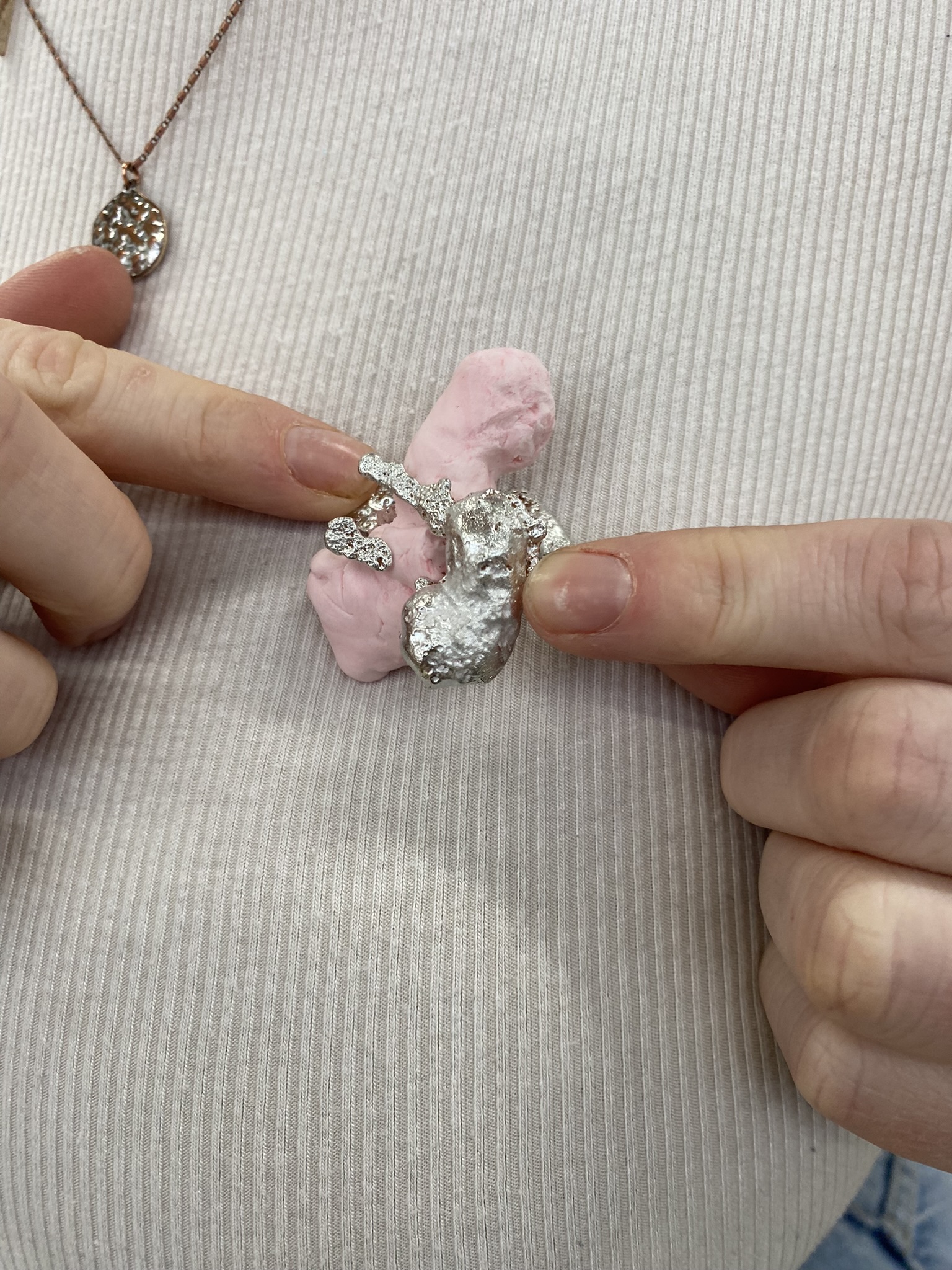 I really enjoy using alternative materials and figuring out the best techniques for them, but I also love more traditional jewellery materials and techniques, like silver, aluminium, casting, riveting and saw piercing, so I have played around with all of these different materials and techniques and tried to figure out what’s best for me and my project. I see all of these pieces as development, even if I’ve not continued with them, because I had to make something bad to know that it doesn’t work and so I can figure out how to make something better. There are never failures in art and design, only happy mistakes that can be worked on.